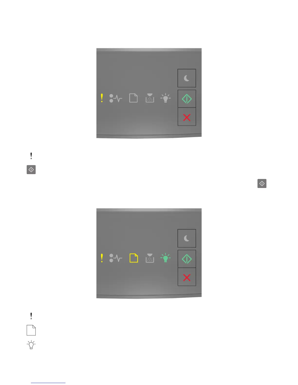 If the printer control panel light sequence matches the light sequence in the preceding illustration, then press