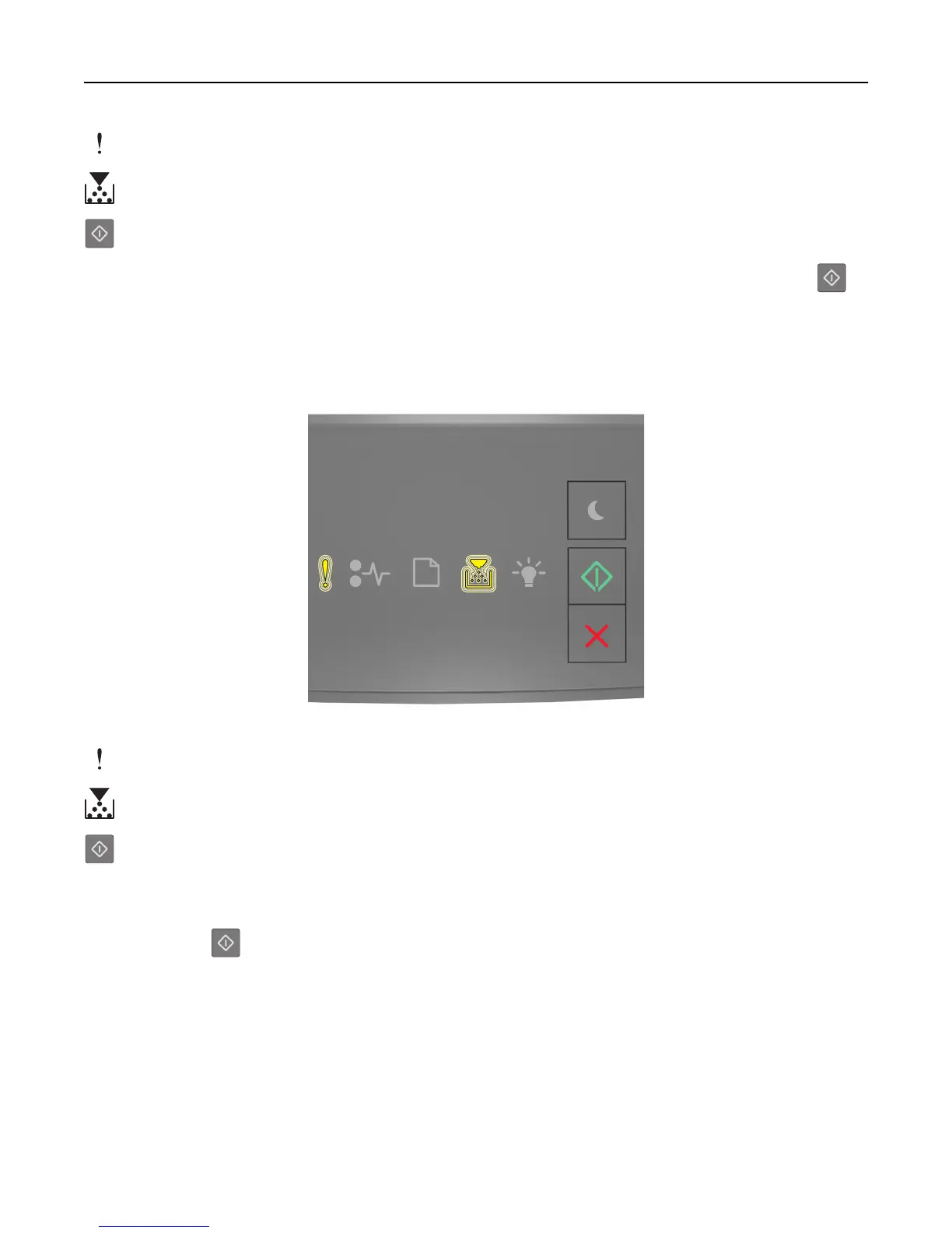 If the printer control panel light sequence matches the light sequence in the preceding illustration, then press
