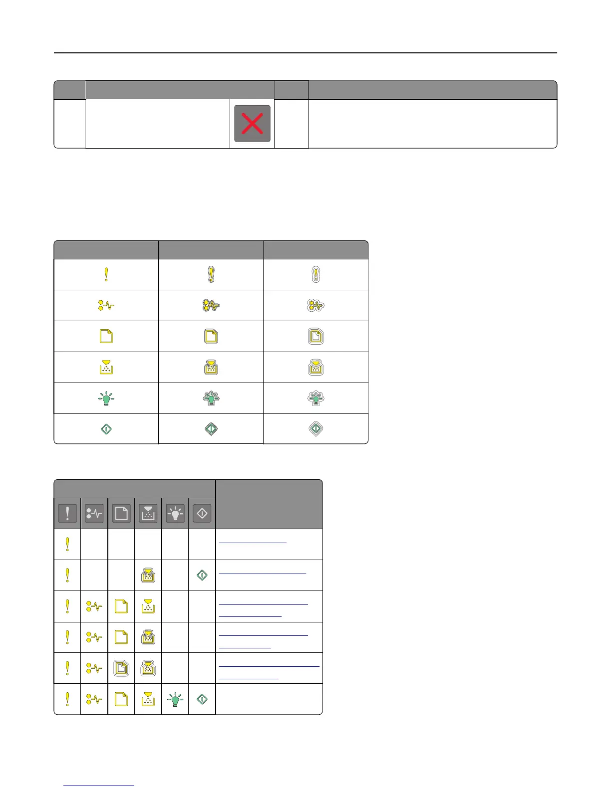blinking, or blinking slowly, indicating a printer status, a warning, or an error. The following table shows the appearances
