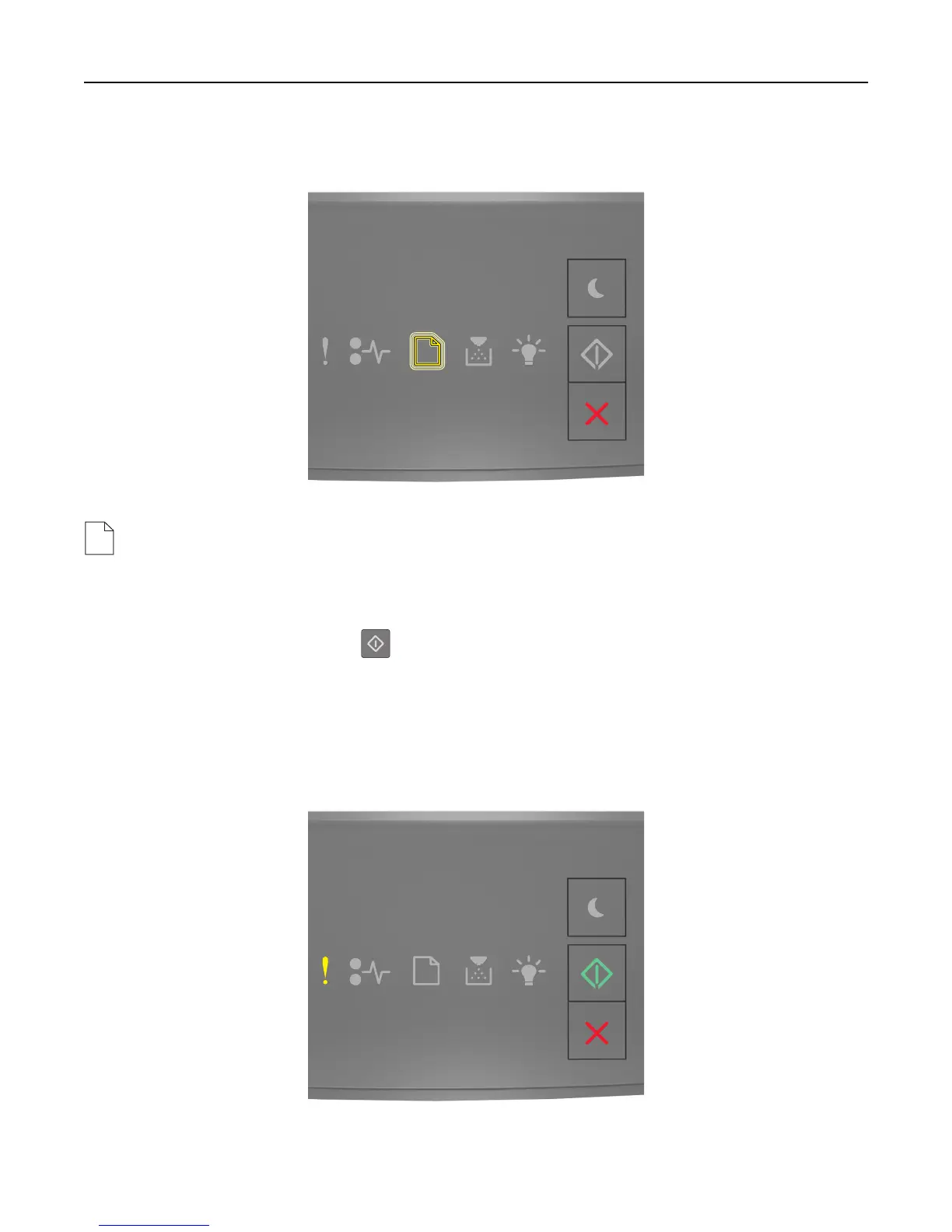 If the printer control panel light sequence matches the light sequence in the preceding illustration, then do the following: