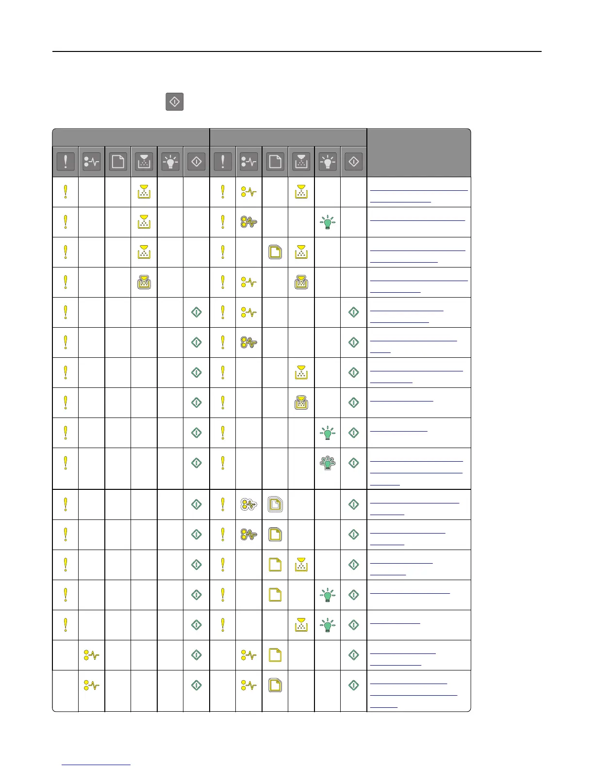 If the printer control panel light sequence matches a light sequence in the “Primary light sequence” column of the