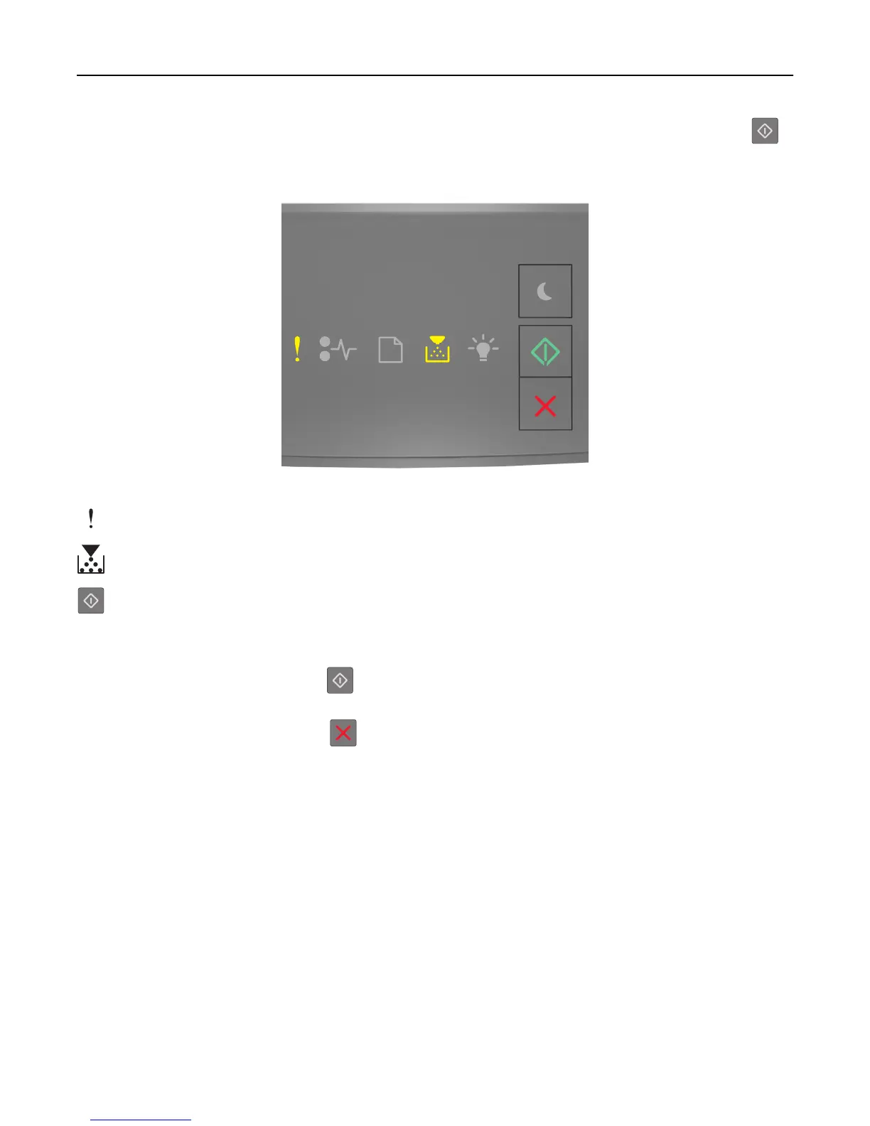 If the printer control panel light sequence matches the light sequence in the preceding illustration, then press