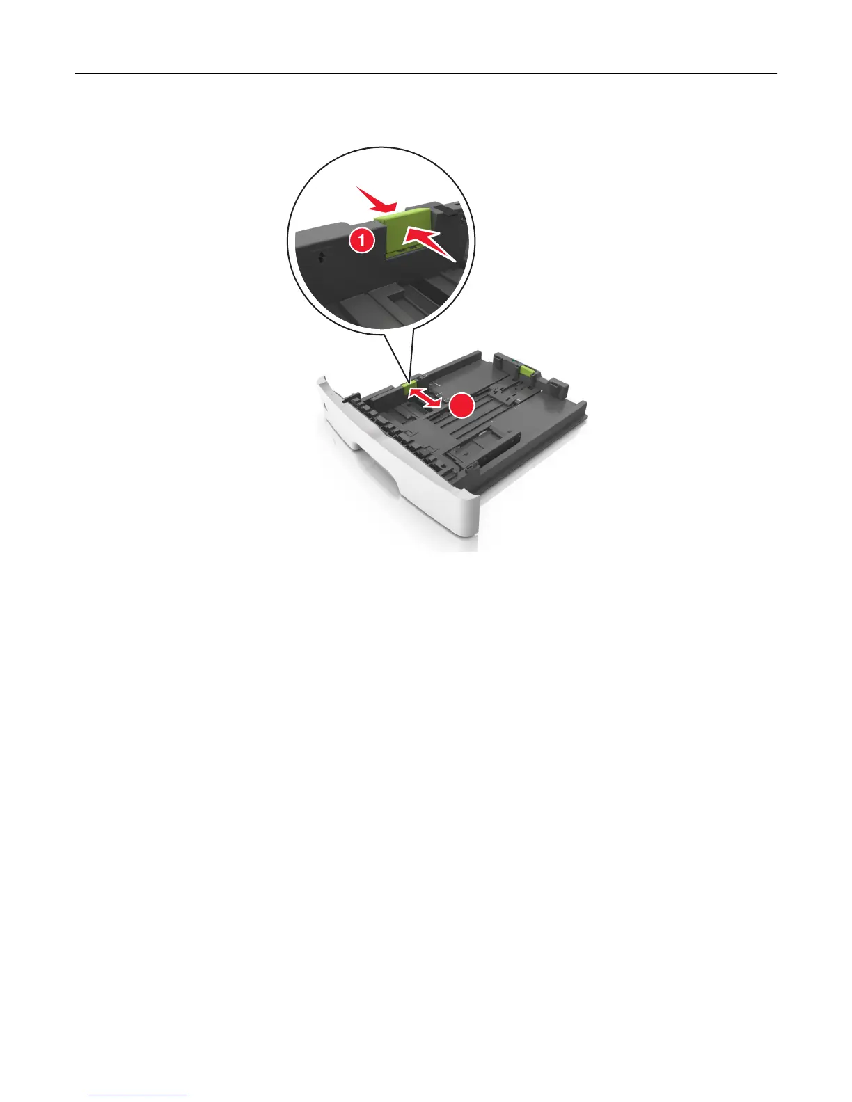 2 Squeeze, and then slide the width guide tab to the correct position for the size of the paper you are loading.