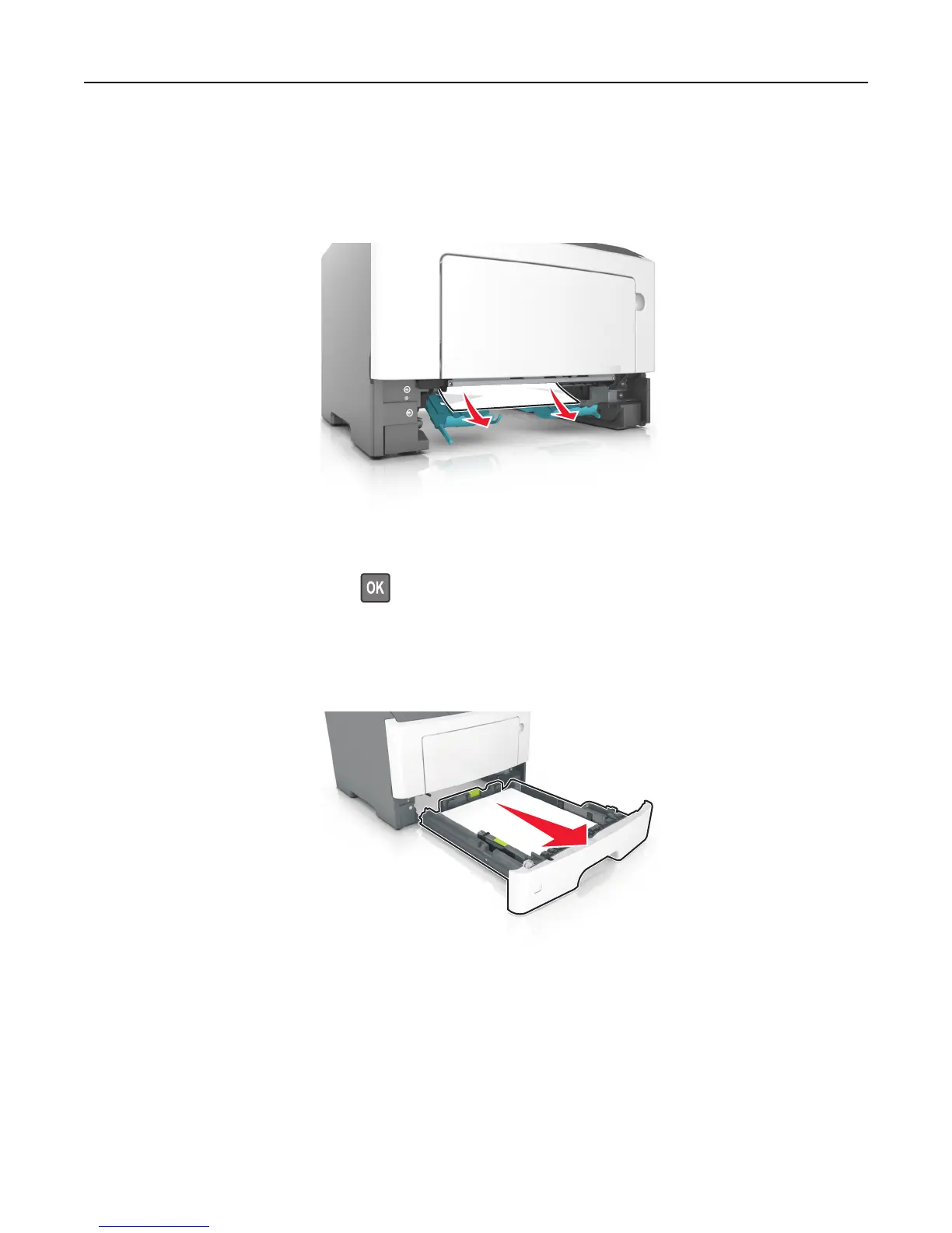 Note: If the jammed paper is not visible in the duplex area, then open the rear door, and then gently remove the