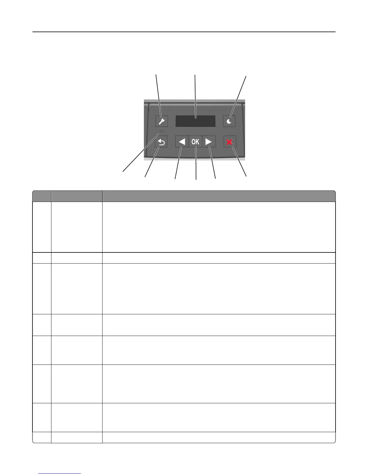 • Pressing the button while navigating within the menus returns the printer control panel
