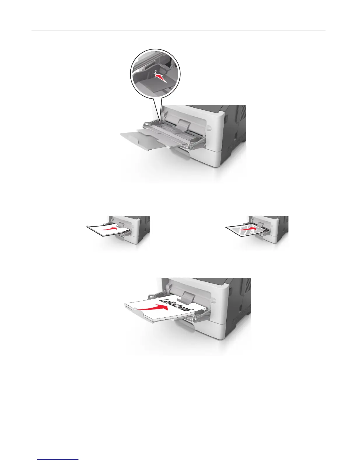 • Load letterhead faceup with the top edge entering the printer first. For two‑sided (duplex) printing, load
