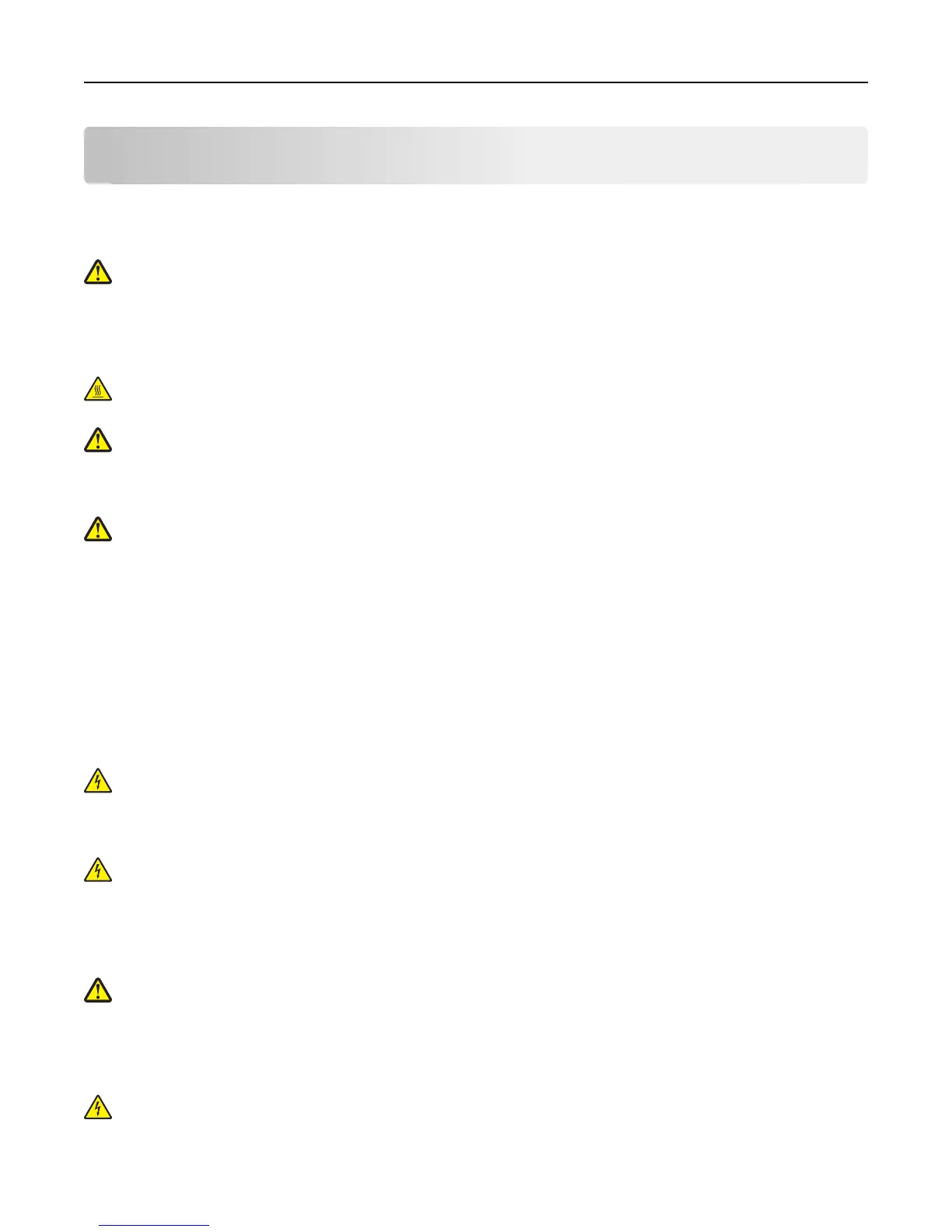 CAUTION—SHOCK HAZARD: To avoid the risk of electrical shock when cleaning the exterior of the printer,