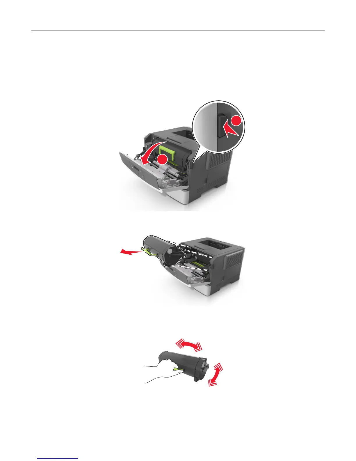 4 Shake the new cartridge to redistribute the toner.