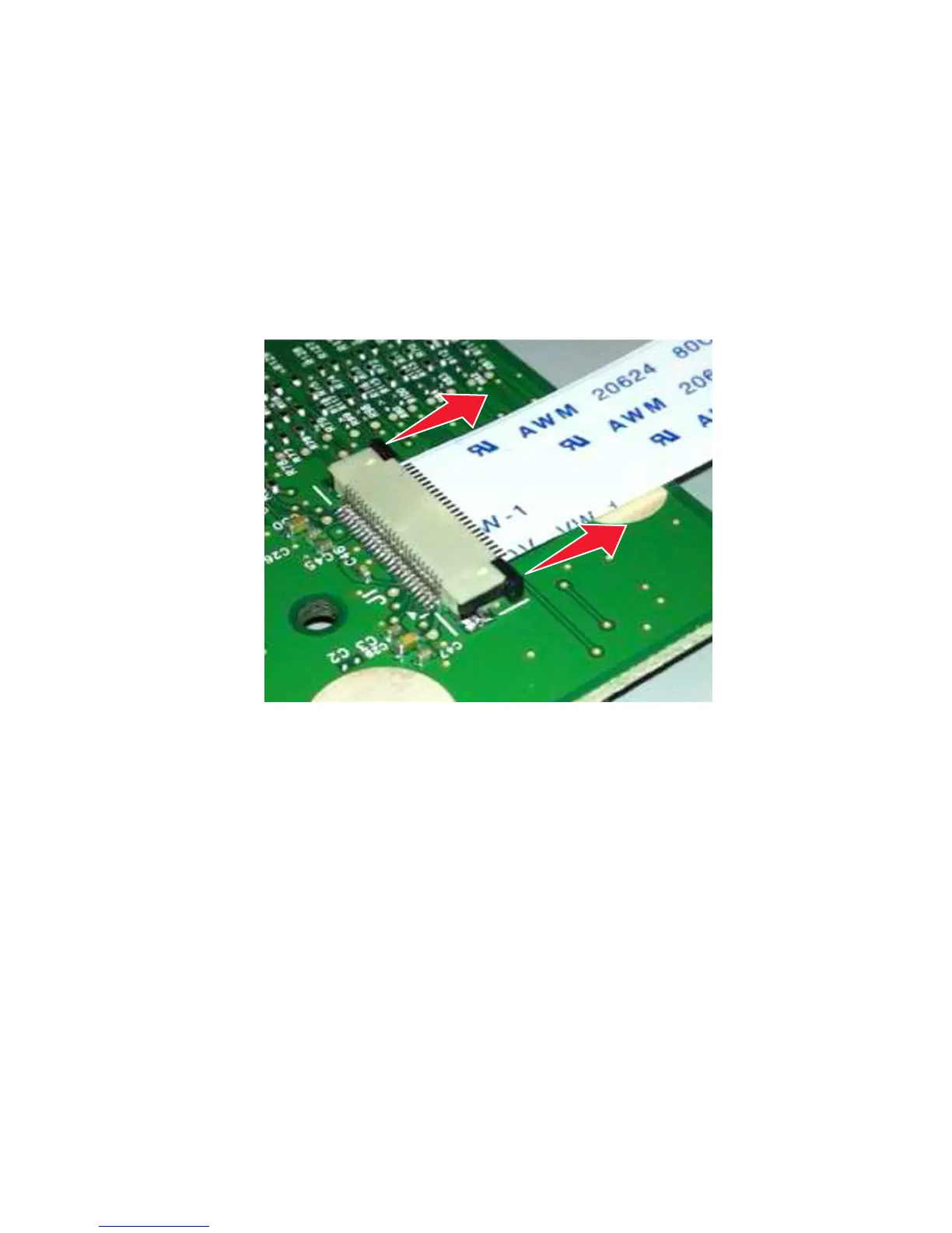 Force (ZIF) connector. The cable is inserted horizontally into the connector.