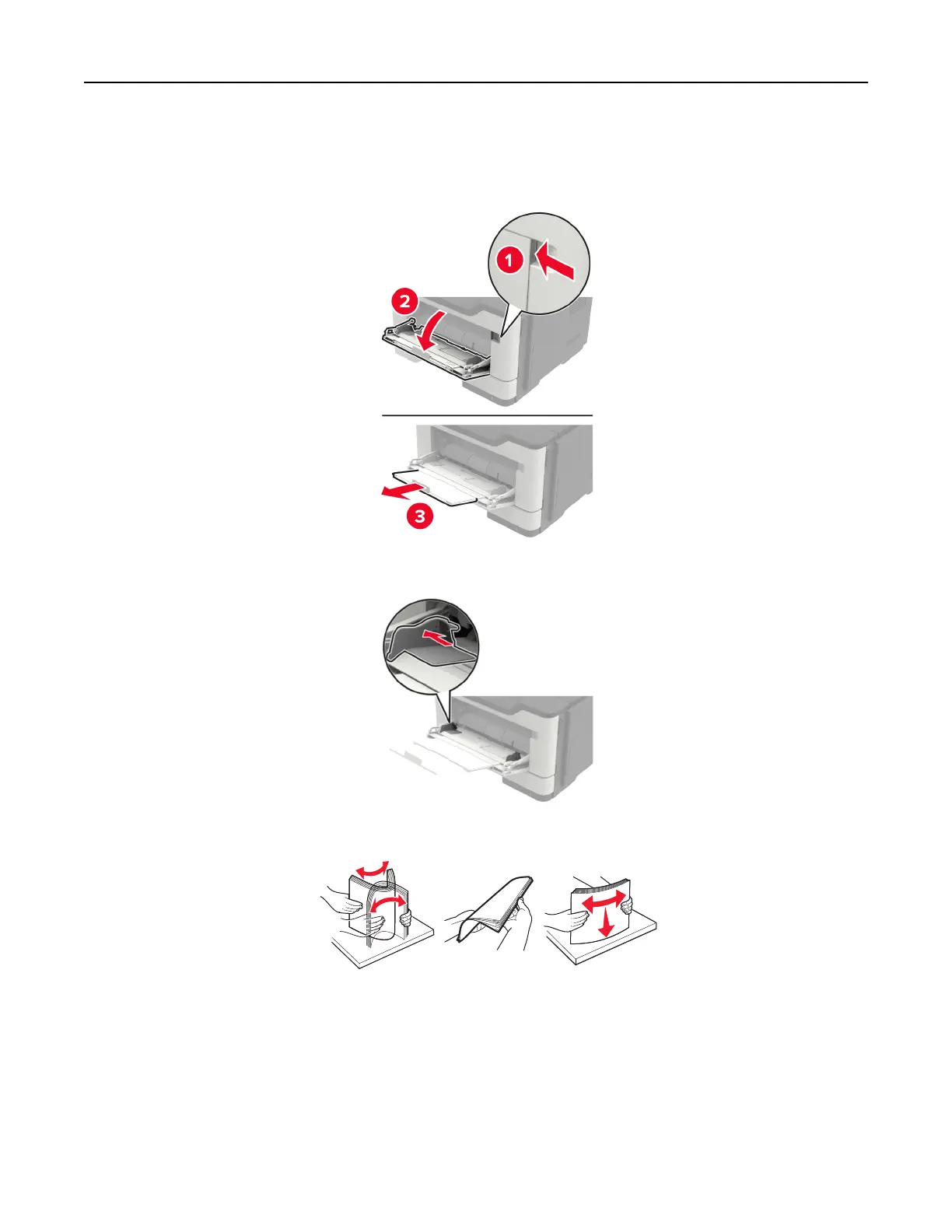 3 Flex, fan, and align the paper edges before loading.