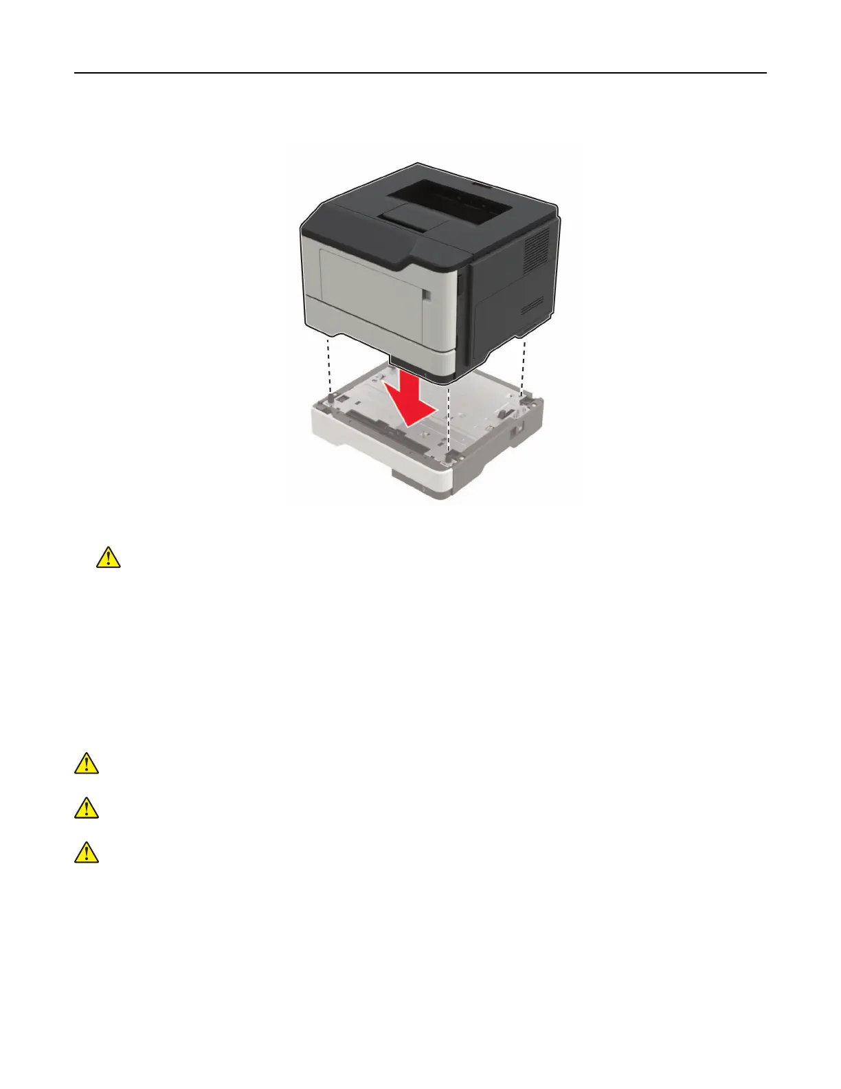 9 Align the printer with the optional tray, and then lower the printer until it clicks into place.