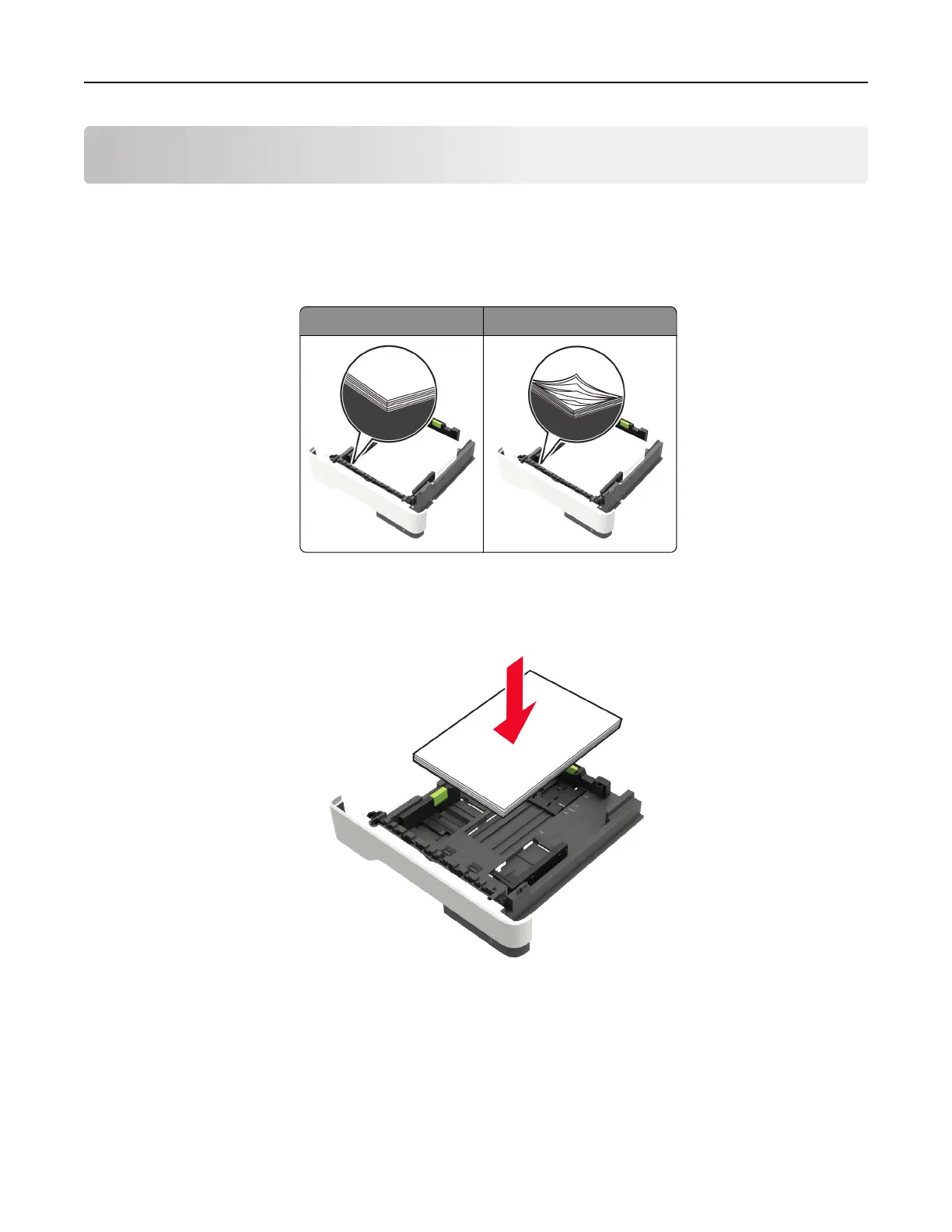 • Do not slide paper into the tray. Load paper as shown in the illustration.