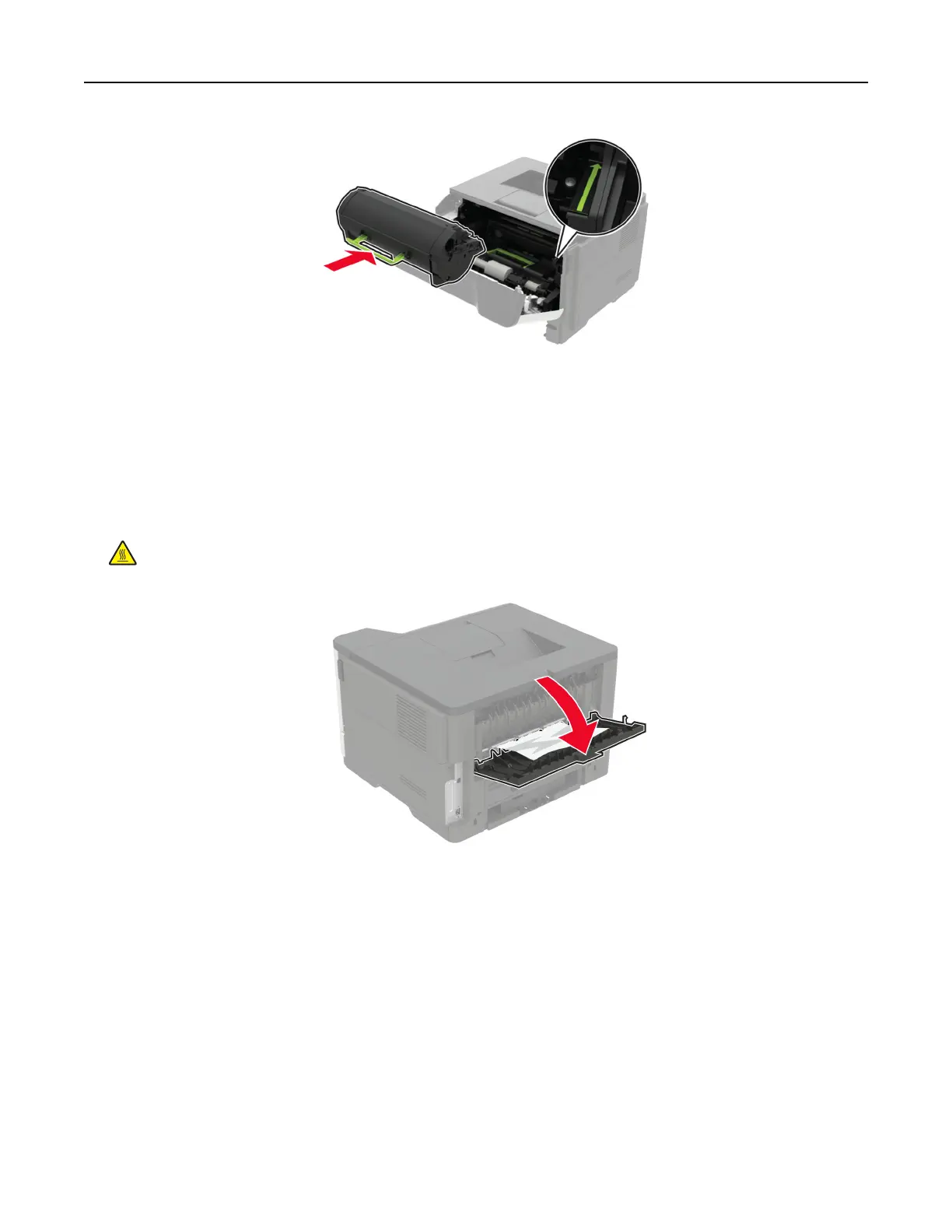 CAUTION—HOT SURFACE: The inside of the printer might be hot. To reduce the risk of injury from a