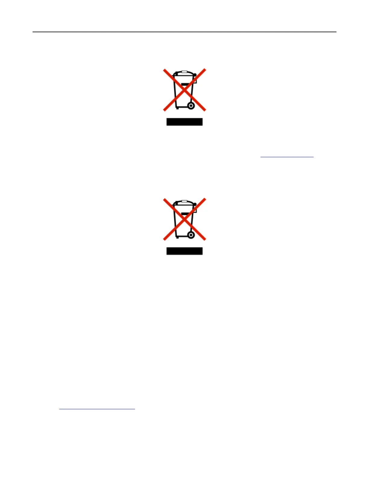 Do not dispose of the printer or supplies in the same manner as normal household waste. Consult your local