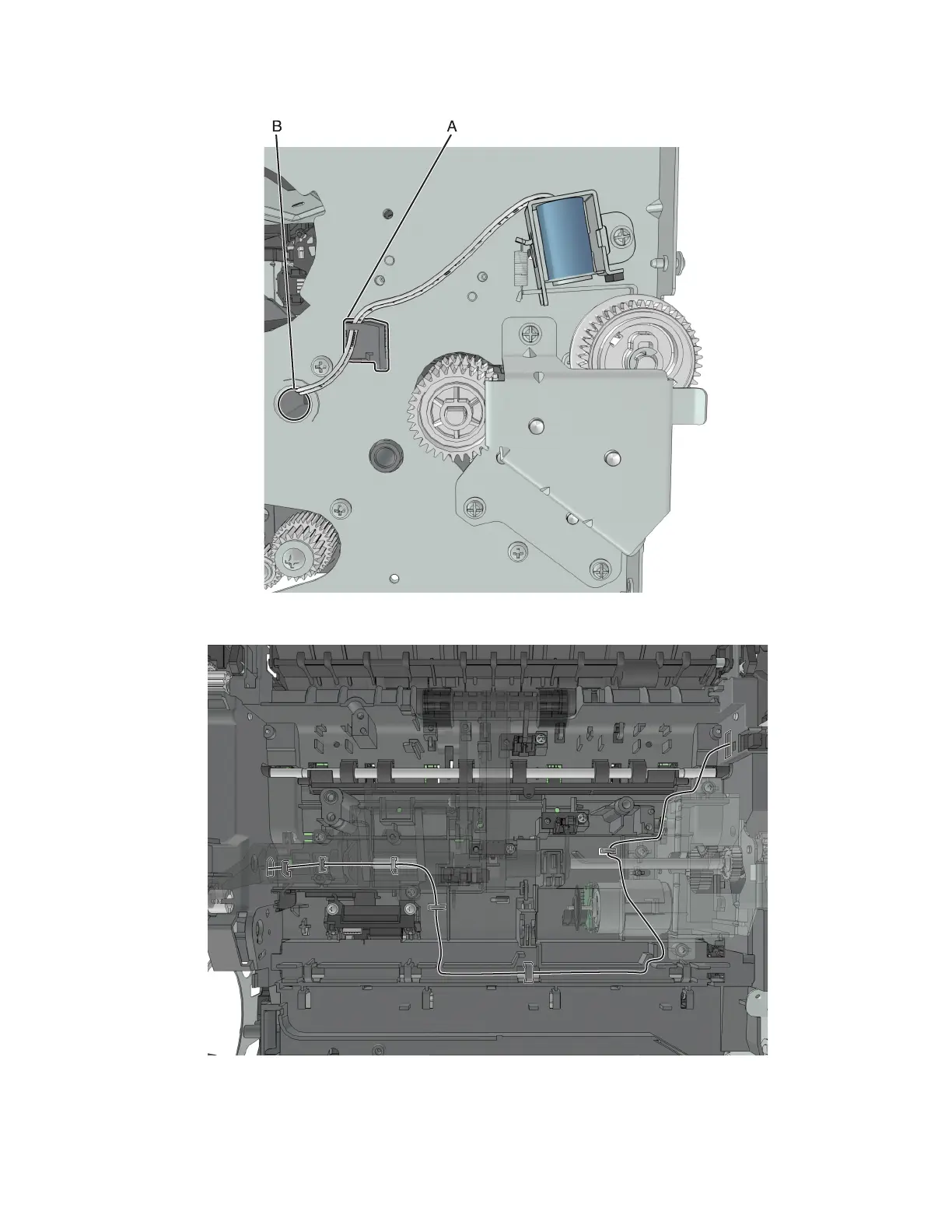 c Insert the cable into the hole (B).