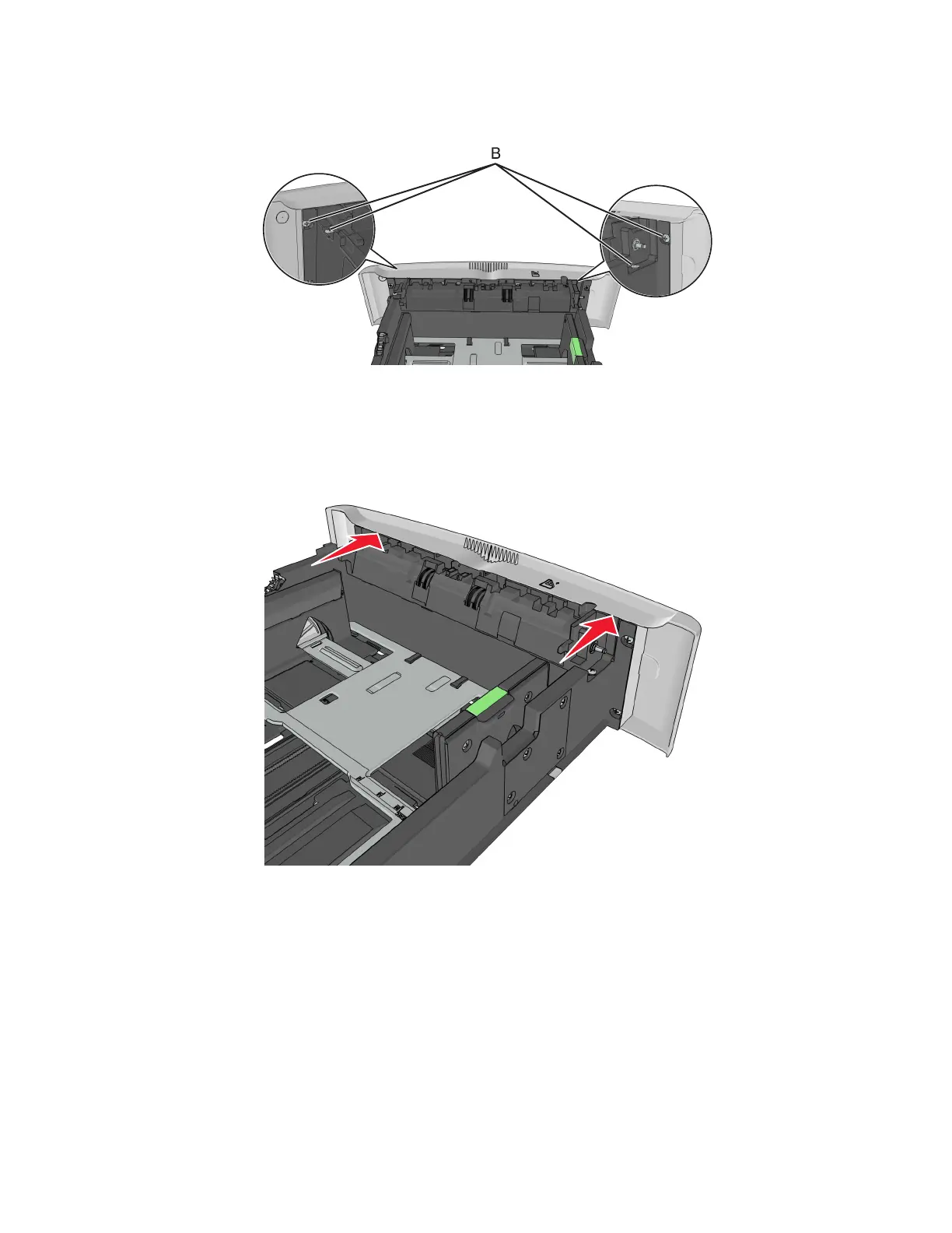 4 Push out the top part of the drawer cover, and then remove the separator roll assembly.