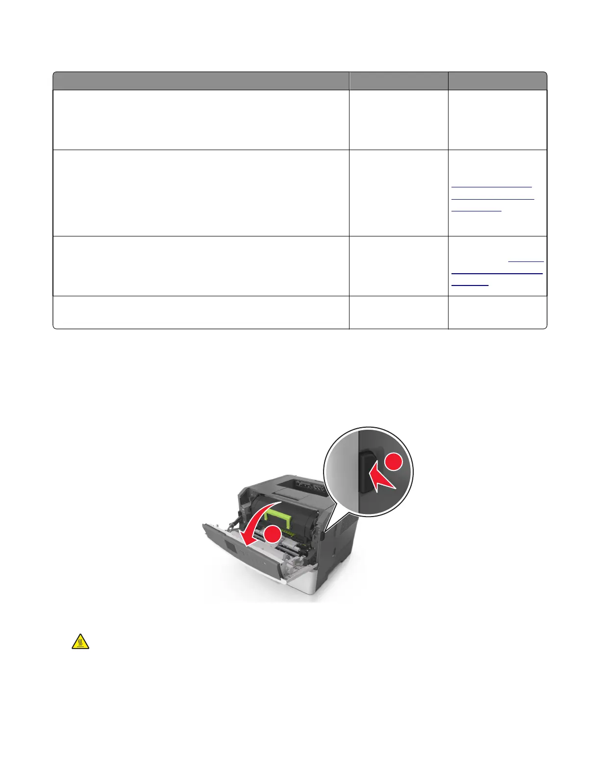 CAUTION—HOT SURFACE: The inside of the printer might be hot. To reduce the risk of injury from a hot