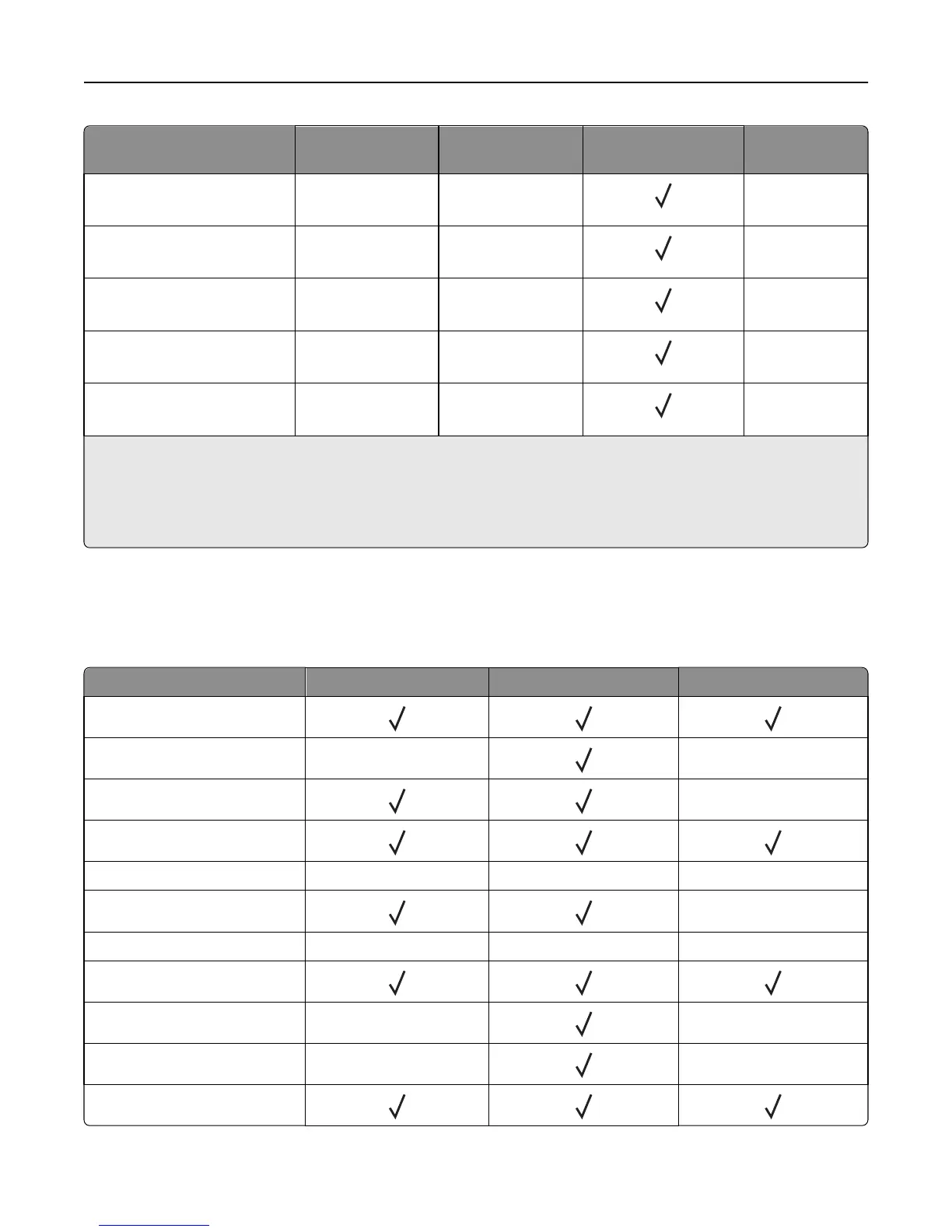 Paper type 250‑ or 550‑sheet tray Multipurpose feeder Duplex mode