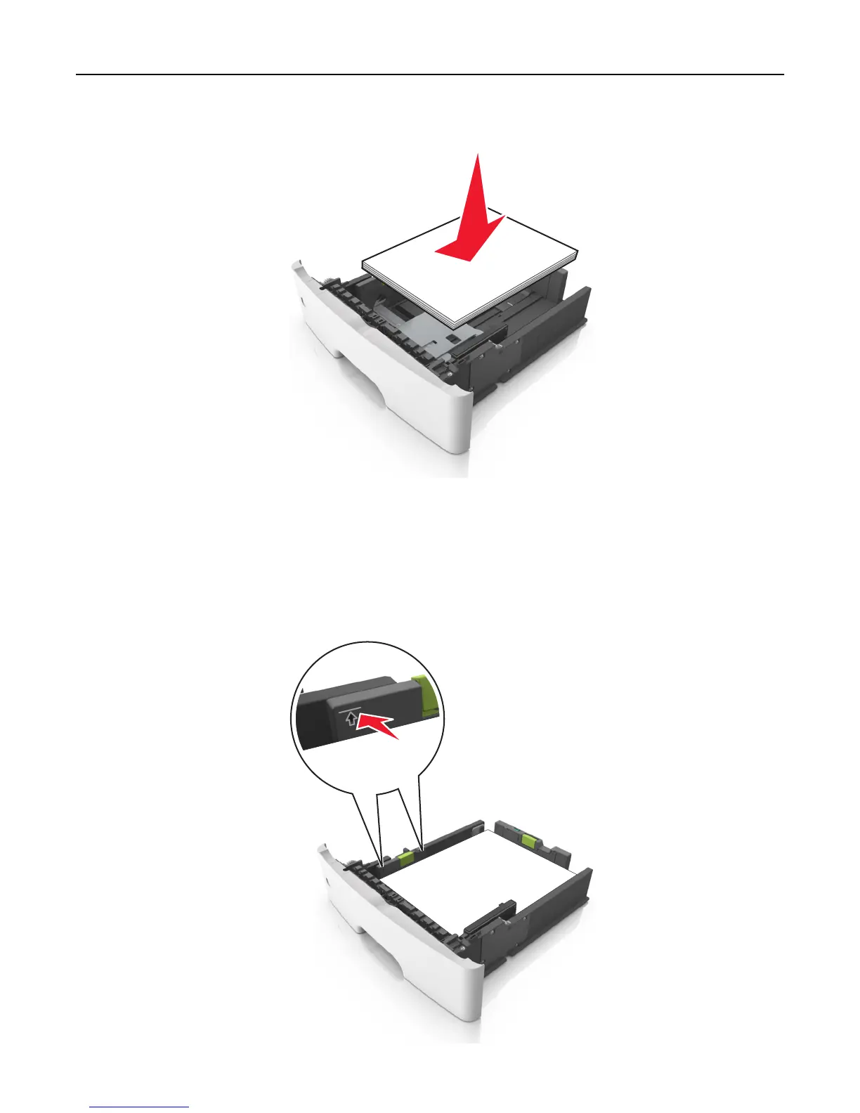 • Load prepunched paper with the holes on the top edge toward the front of the tray.