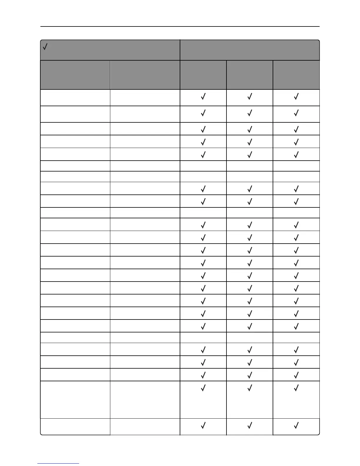 X = Not supported