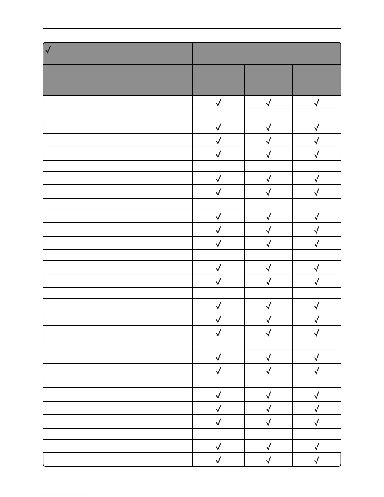X = Not supported