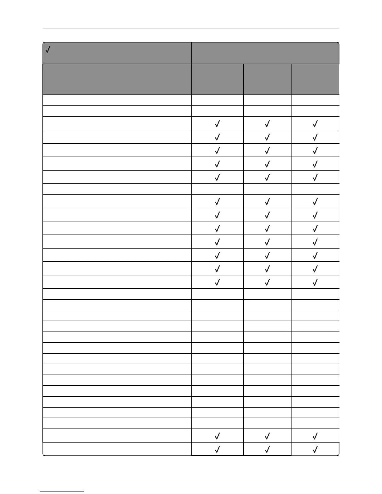 X = Not supported