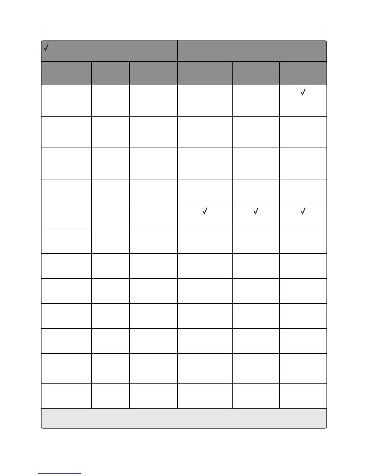 X = Not supported