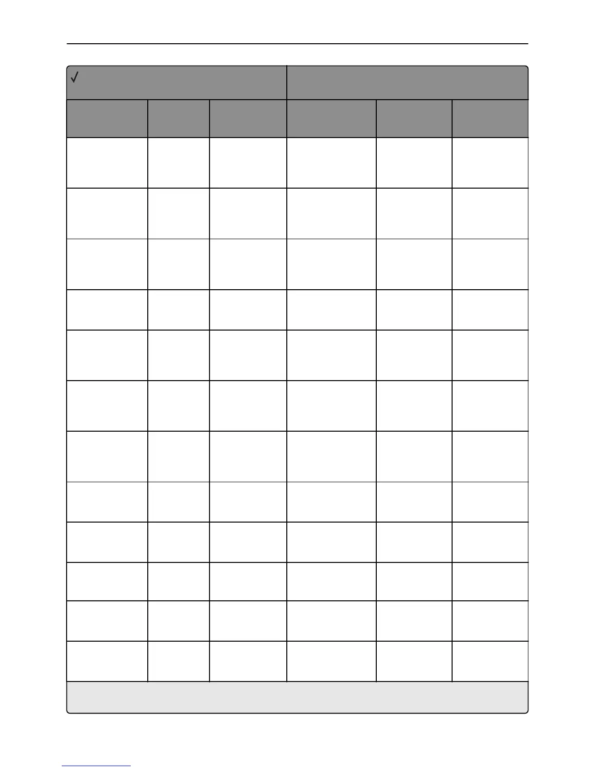 X = Not supported