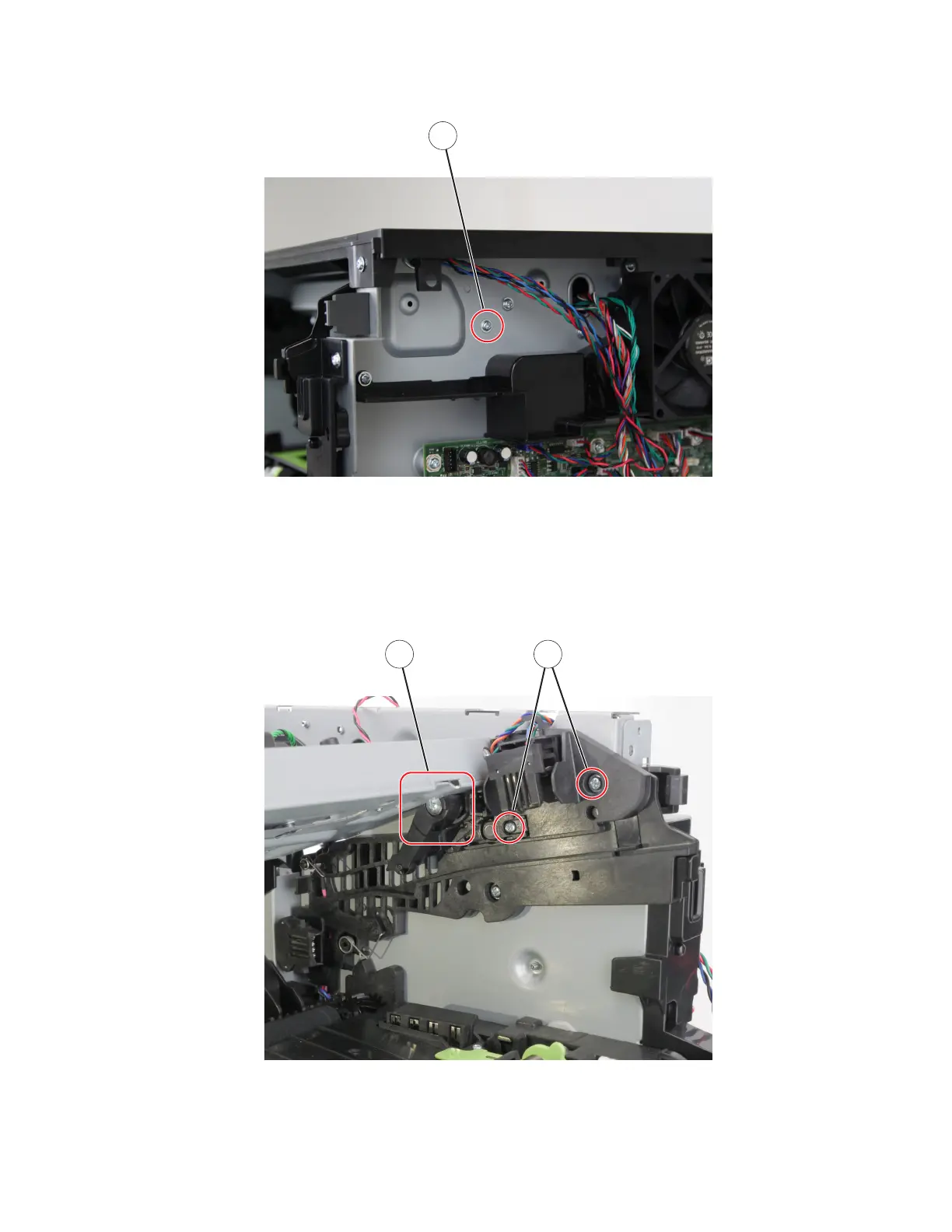 Note: The laser scanning unit frame (C) hinders the detachment.