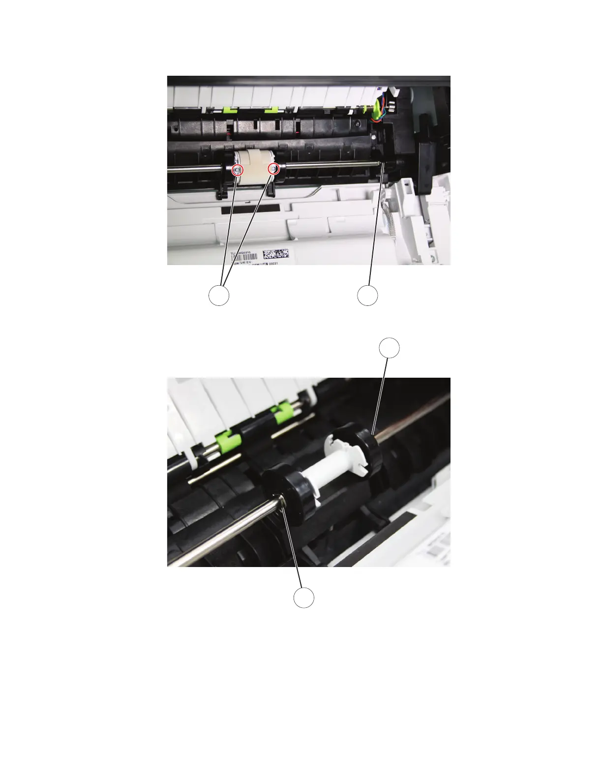 4 Hold the end of the shaft (D), and then pull out the roller to remove it.