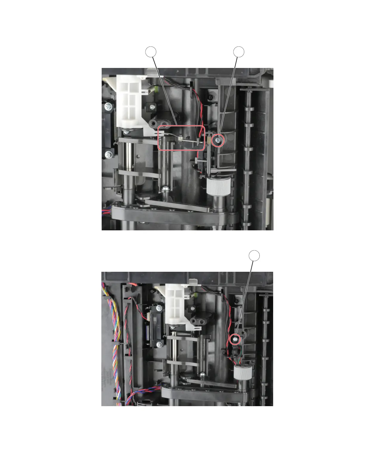 5 Detach the spring (A), and then remove the screw (B) and sensor flag.