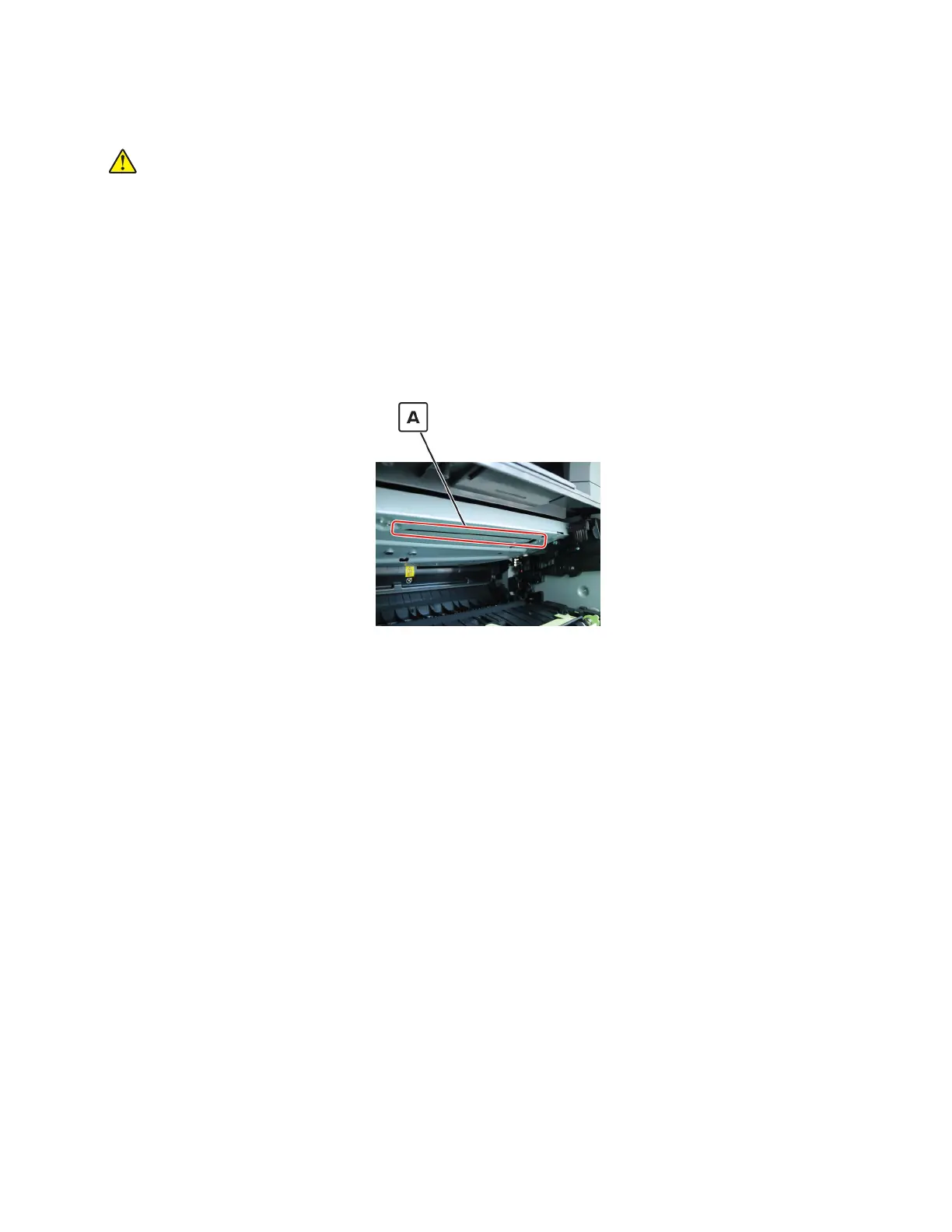 3 From the printhead access opening (A) in the top of the frame at the front of the printer, find the printhead