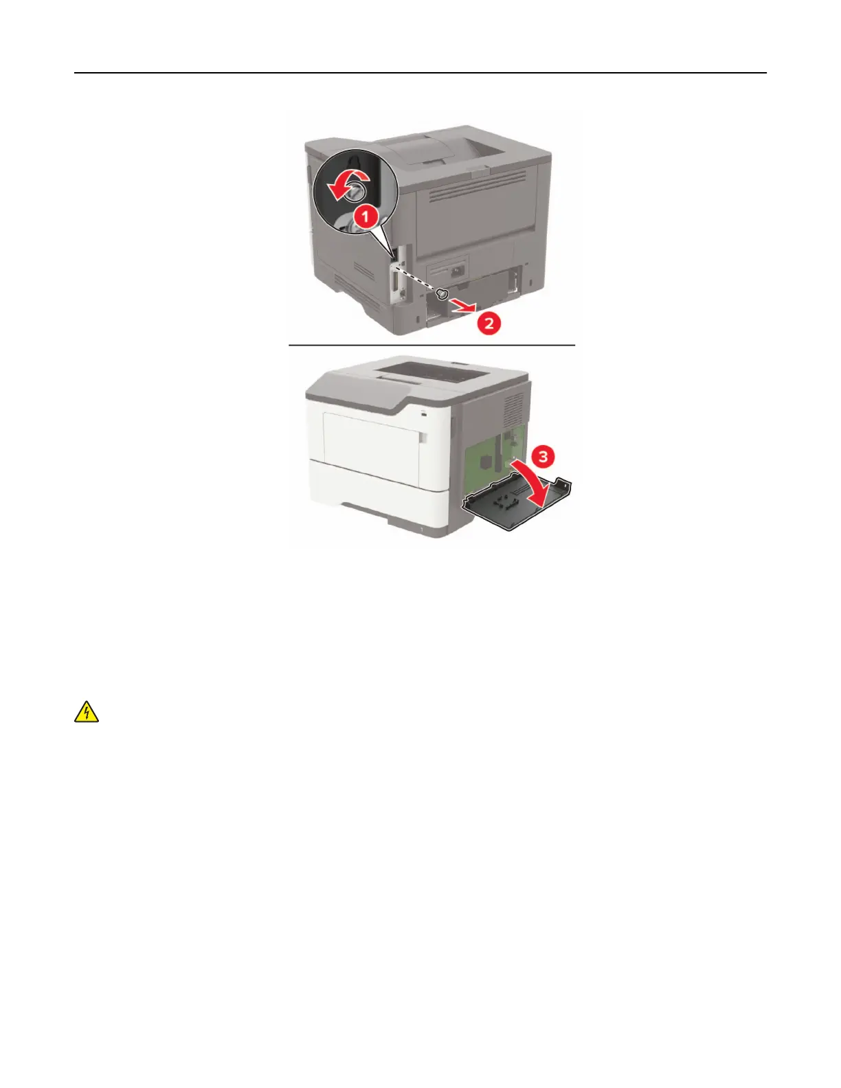 board or installing optional hardware or memory devices sometime after setting up the printer, then turn