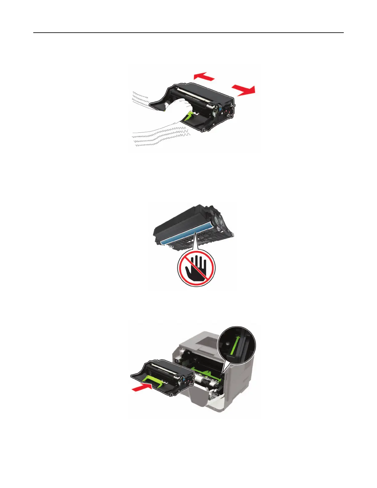 Warning—Potential Damage: Do not touch the photoconductor drum. Doing so may aect the quality of