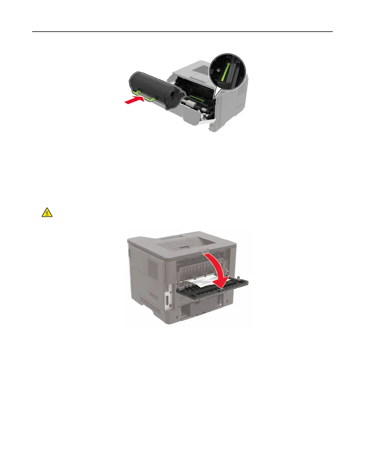 CAUTION—HOT SURFACE: The inside of the printer might be hot. To reduce the risk of injury from a