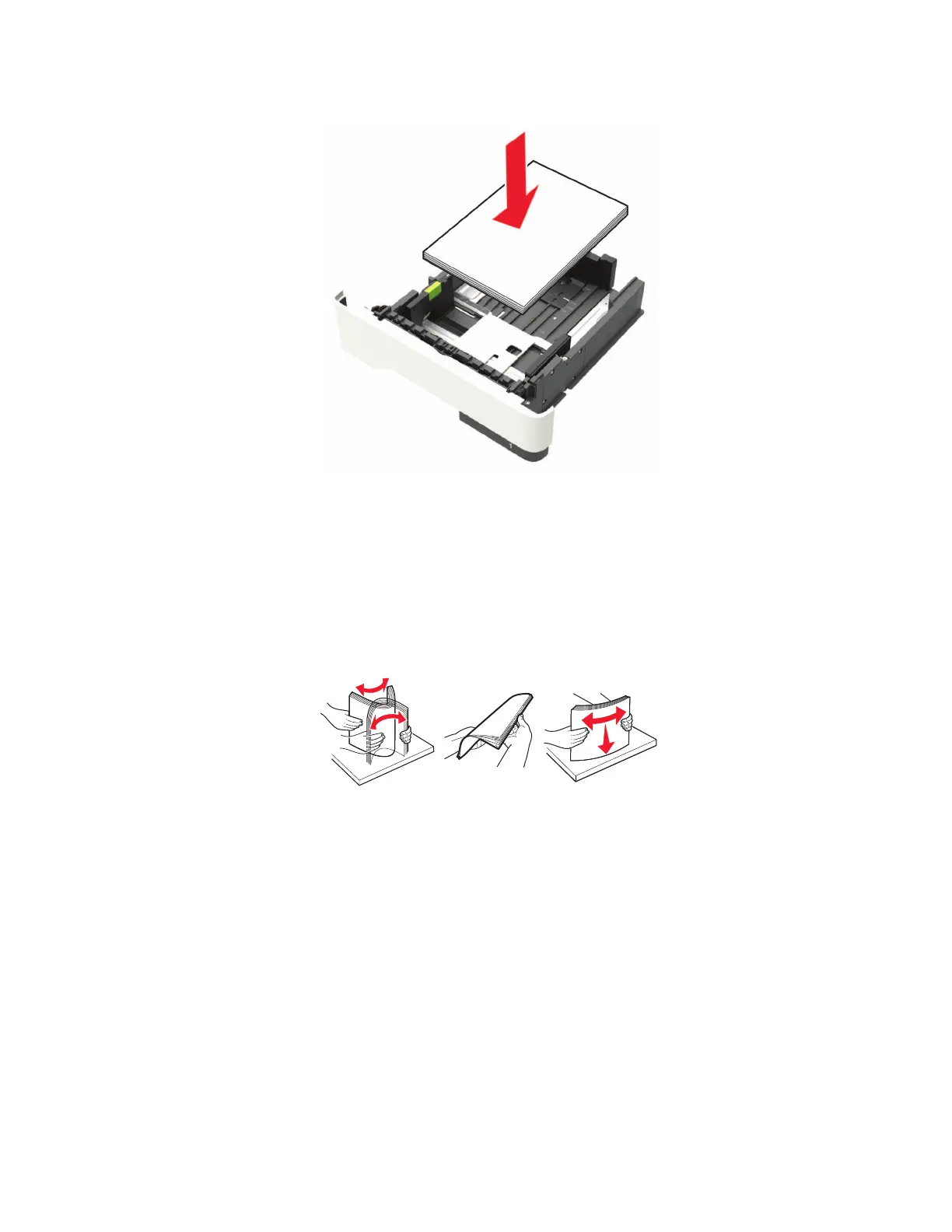 Flex, fan, and align the paper edges before loading.