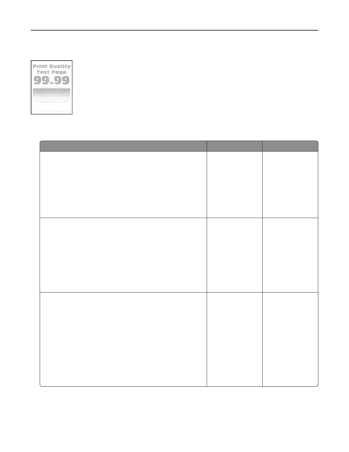 Note: Before solving the problem, print the Print Quality Test Pages. From the home screen, touch Settings >