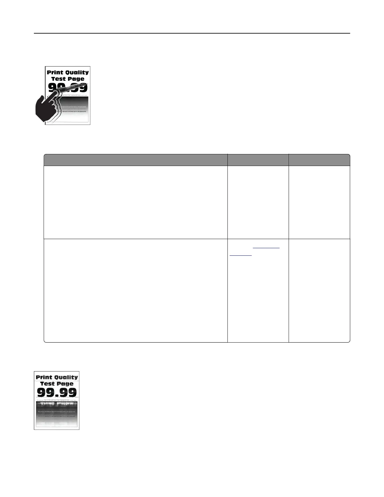 Note: Before solving the problem, print the Print Quality Test Pages. From the home screen, touch Settings >