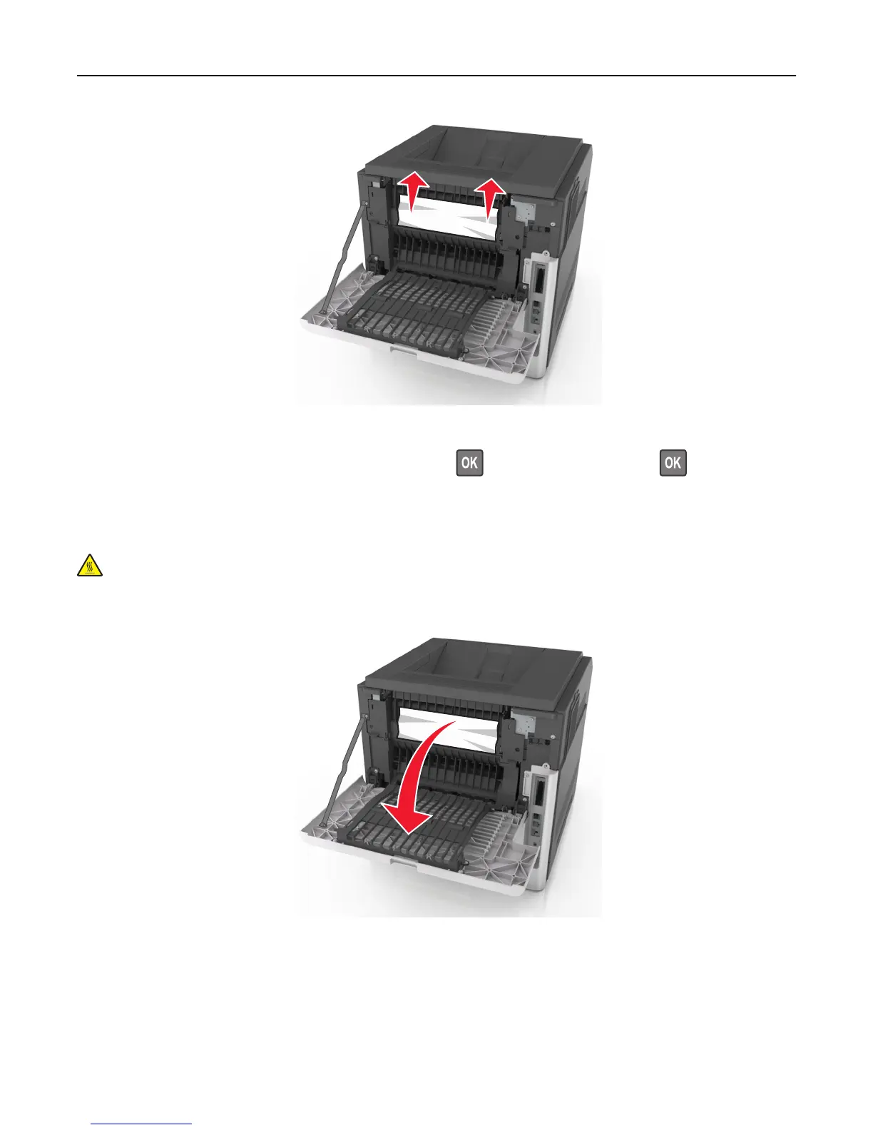 4 To clear the message and continue printing, select Next > > Clear the jam, press OK > .