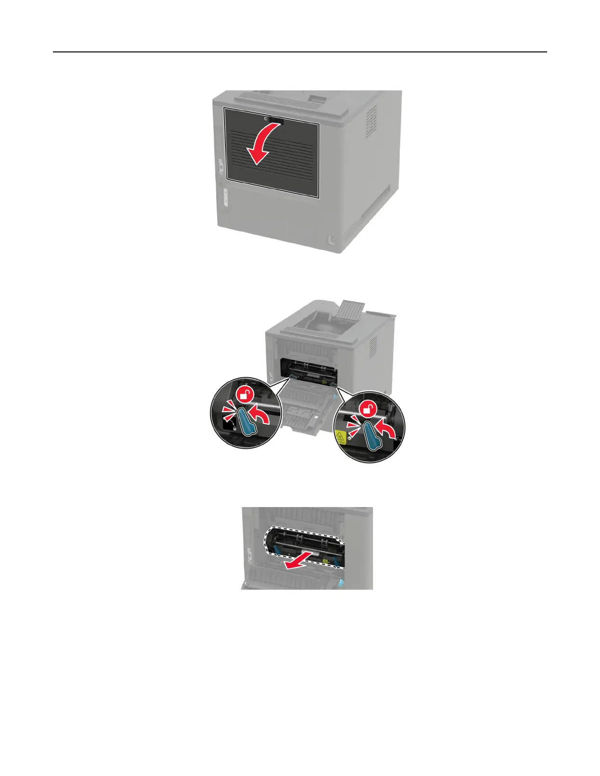 3 Unlock the hot roll fuser.