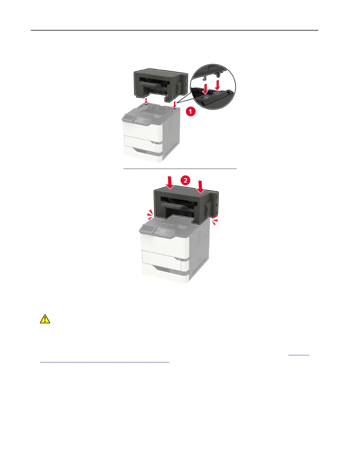 5 Install the finisher on the printer.