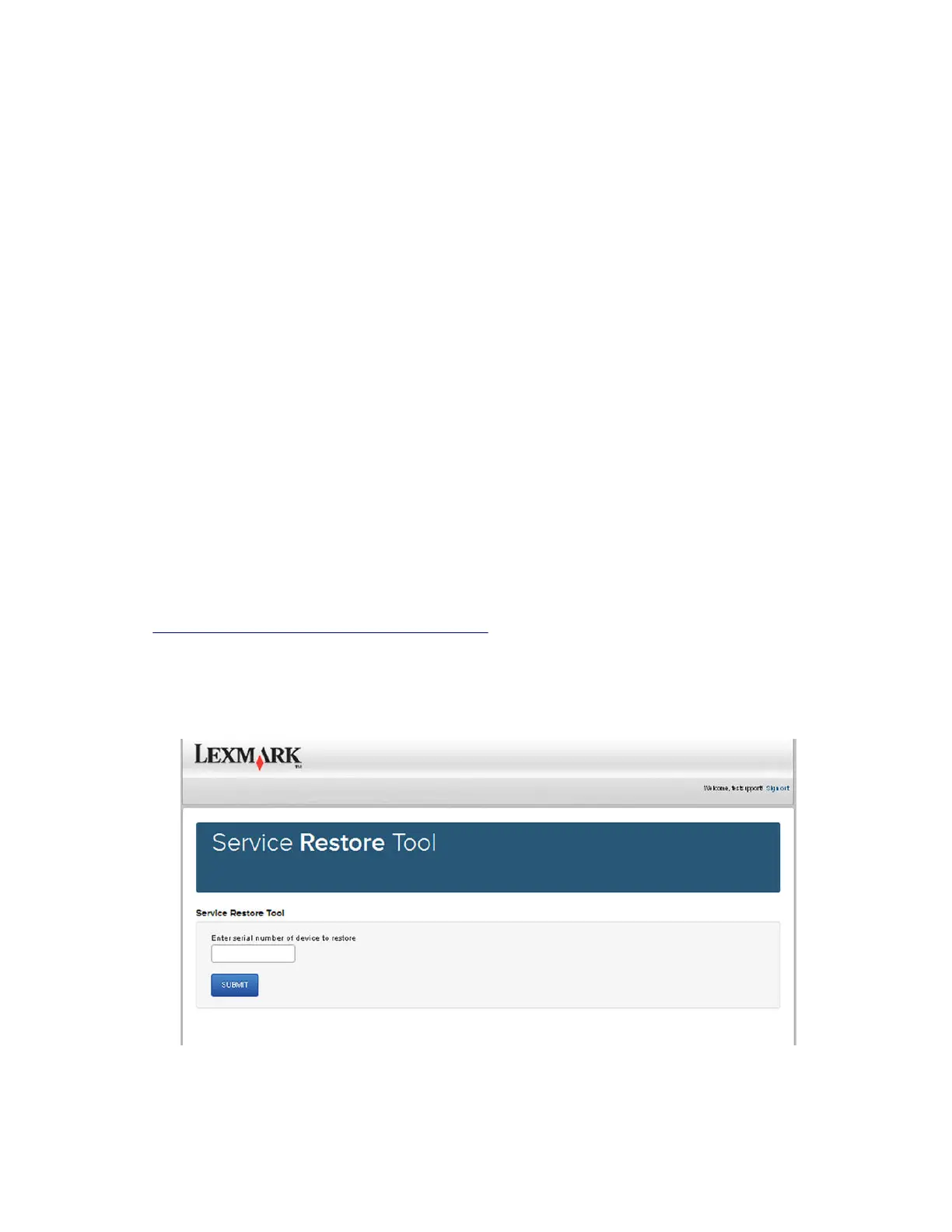 Go to https://cdp.lexmark.com/service-restore-tool/ to access the tool.