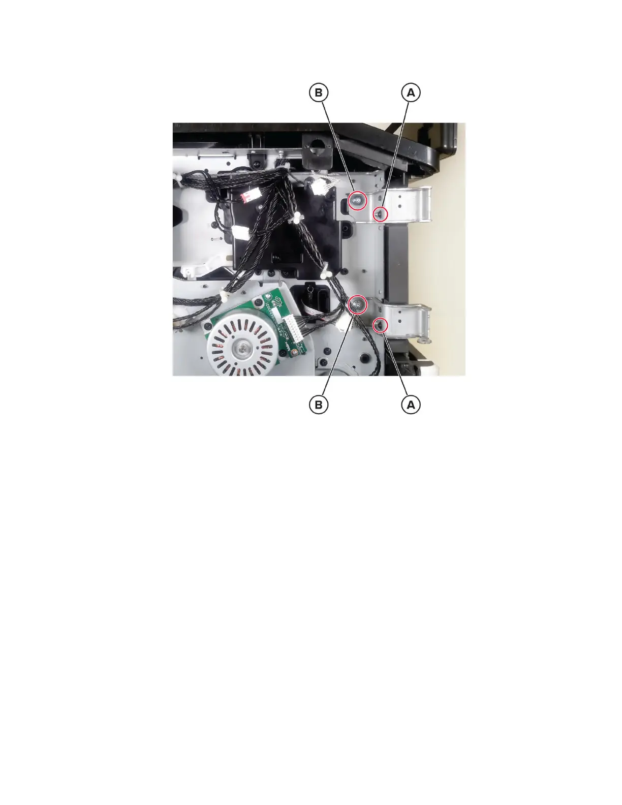 3 Loosen the two screws (A), and then remove the two screws (B).
