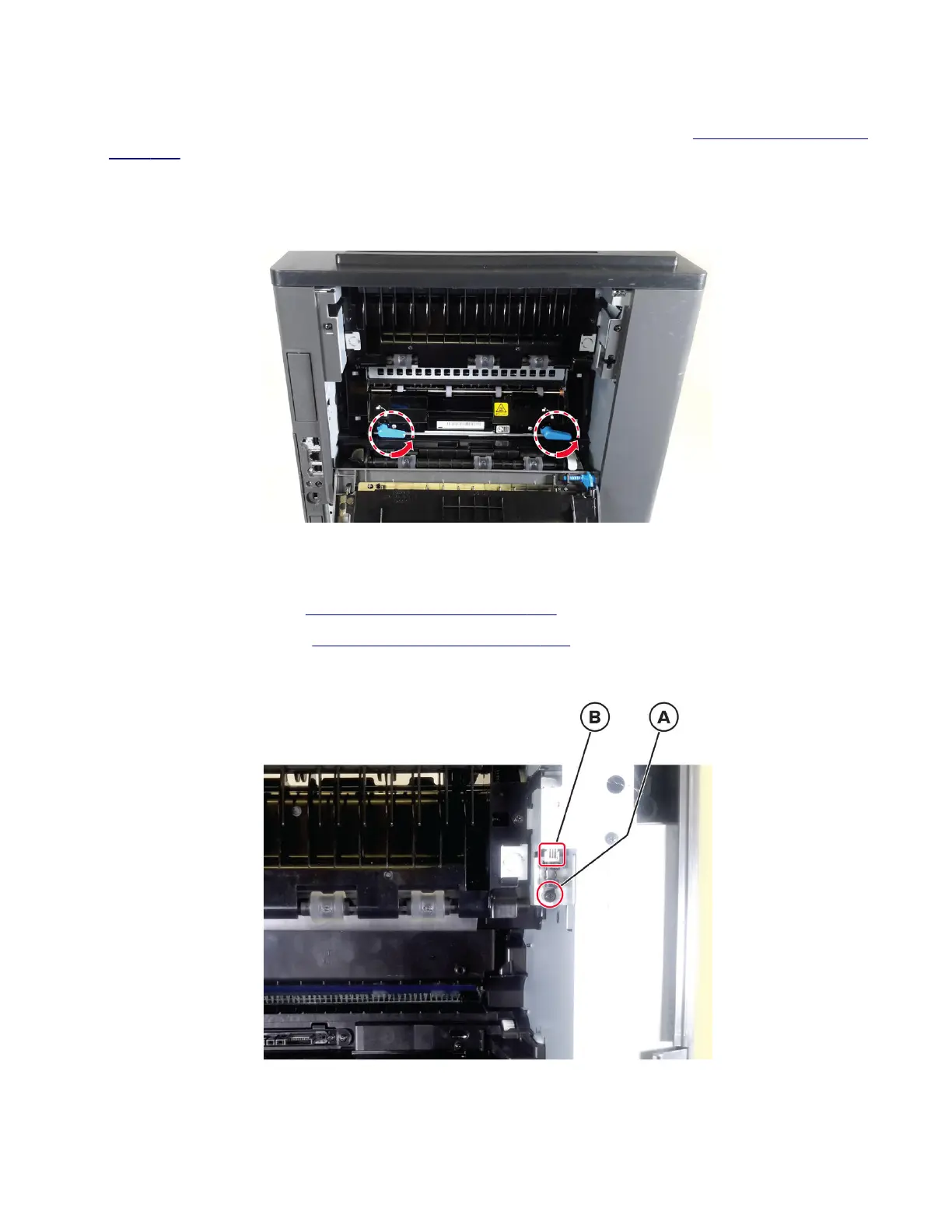 1 For models using a hot roll type of fuser, remove the printhead access cover. See “Printhead removal” on