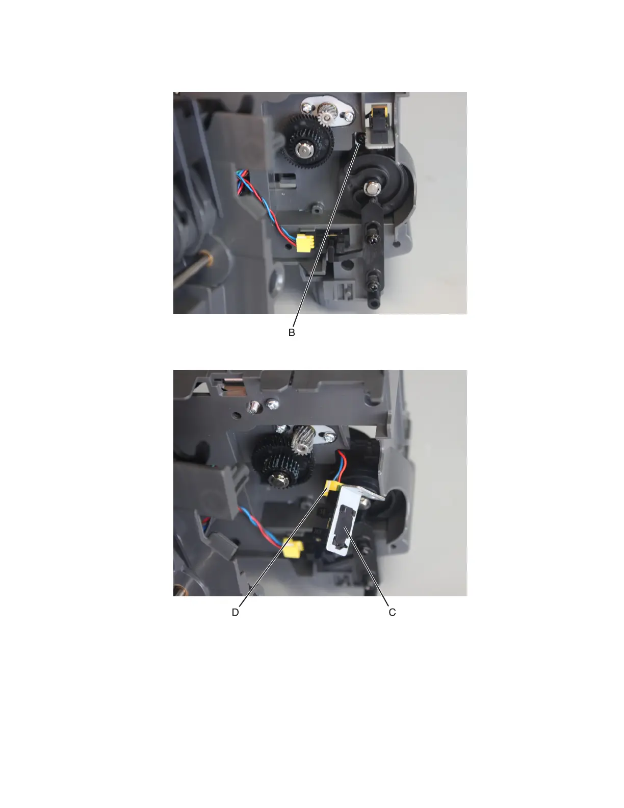 4 Remove the sensor retainer (C), disconnect the cable (D), and then remove the sensor.