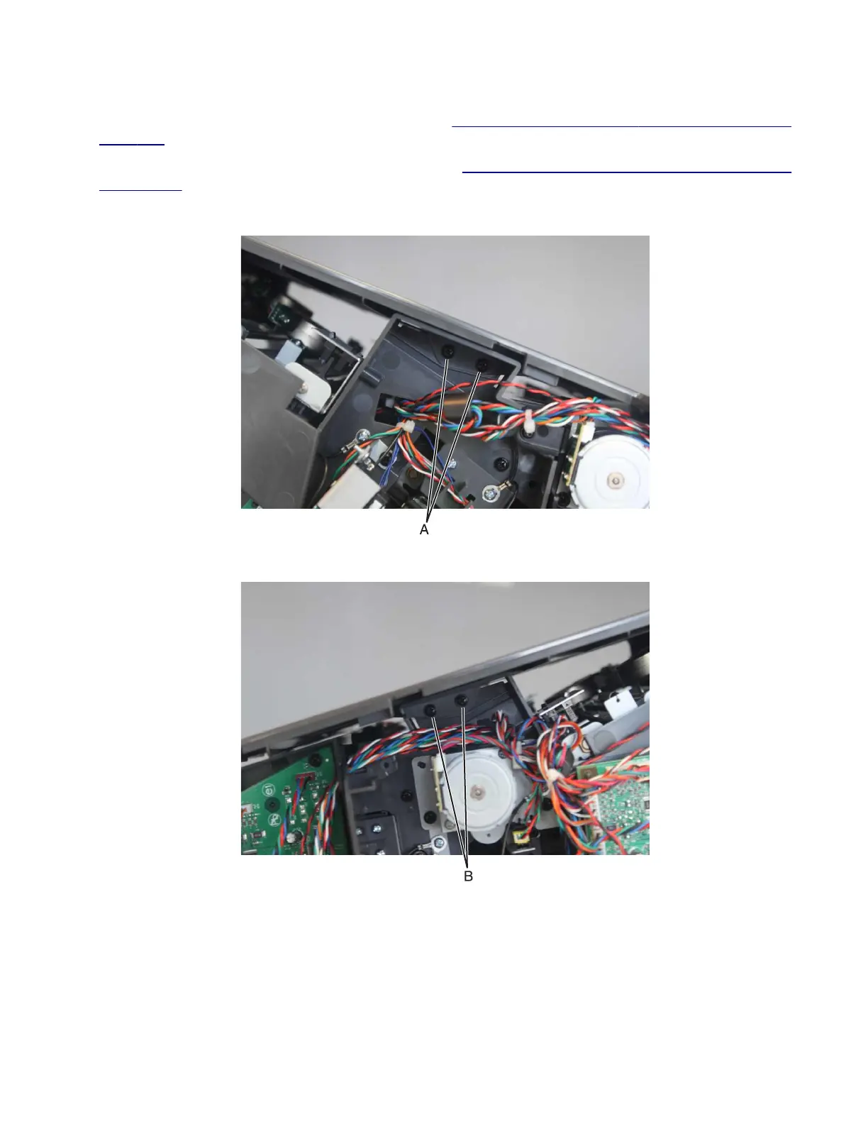 4 From the left side, remove the two screws (B).