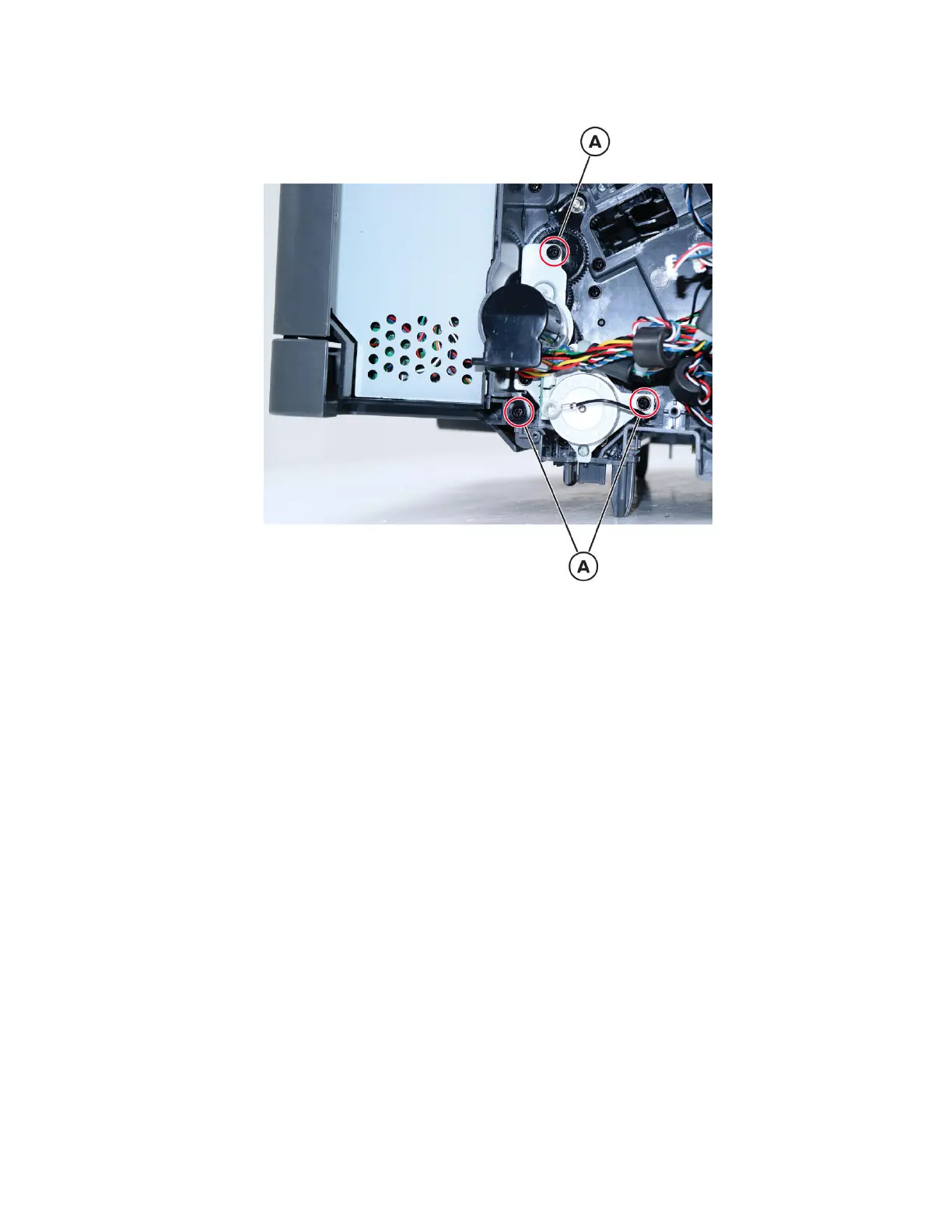 3 Remove the three screws (A), and then disconnect all the cables from the motor bracket.