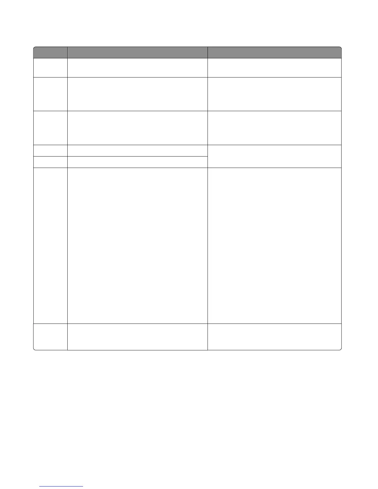 Error code Description Action