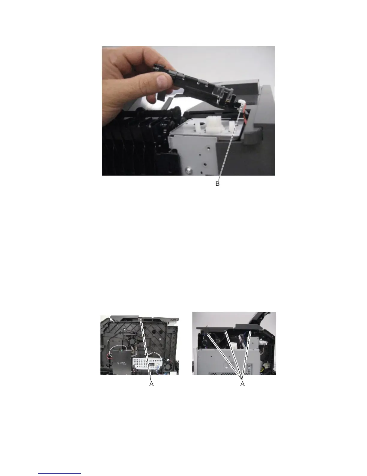6 Remove the output bin sensor cover. See “Output bin sensor cover removal” on page 320.
