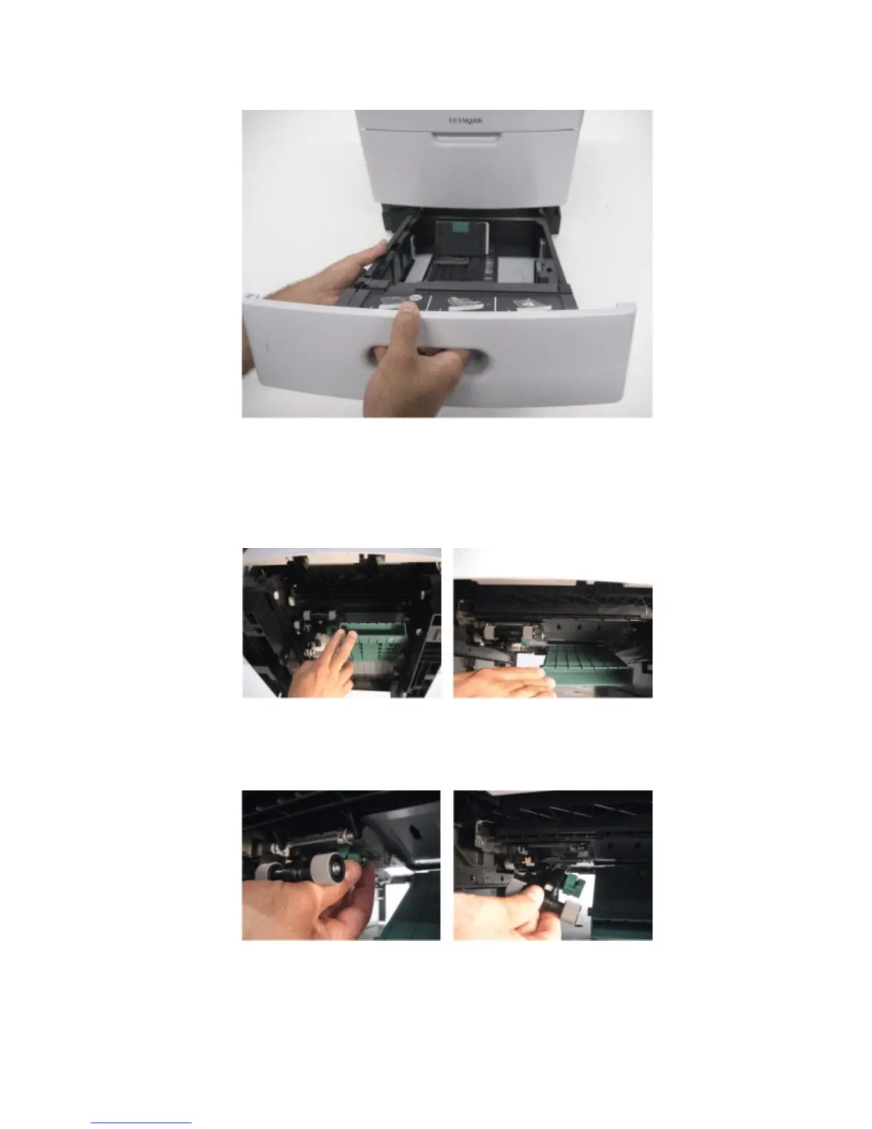 Note: When removing the pick roller assembly, avoid all contact with the roller surfaces, or paper jams might